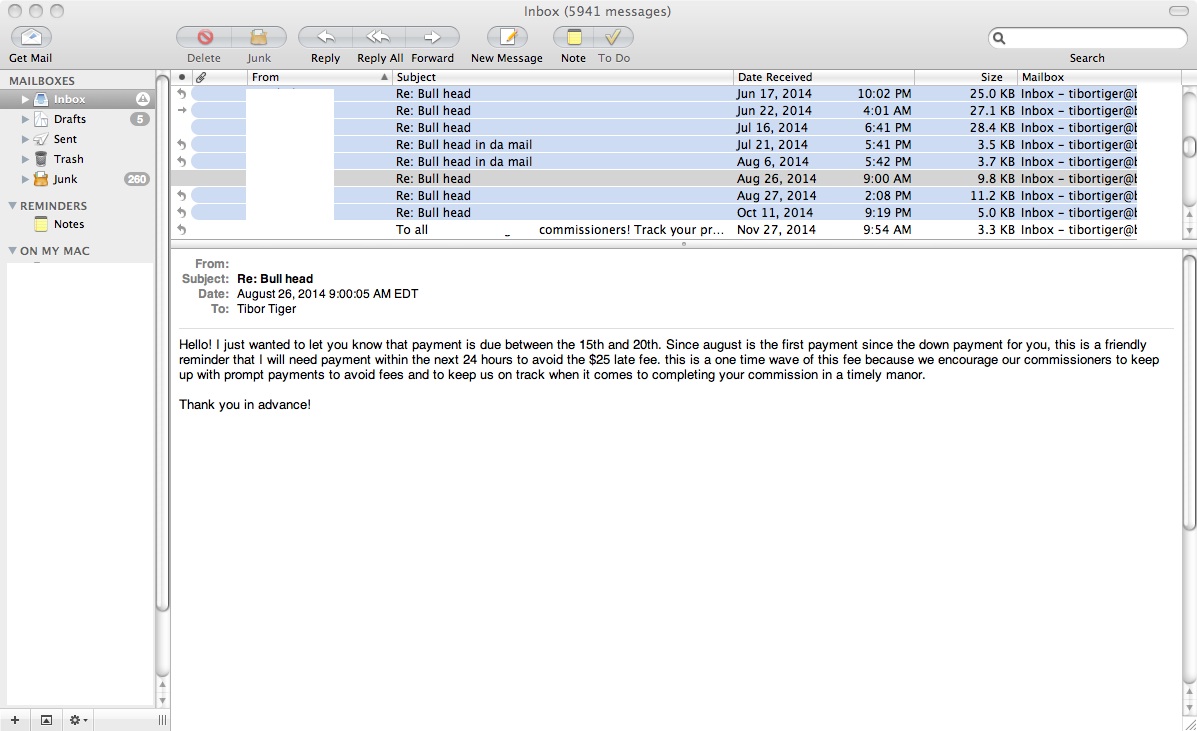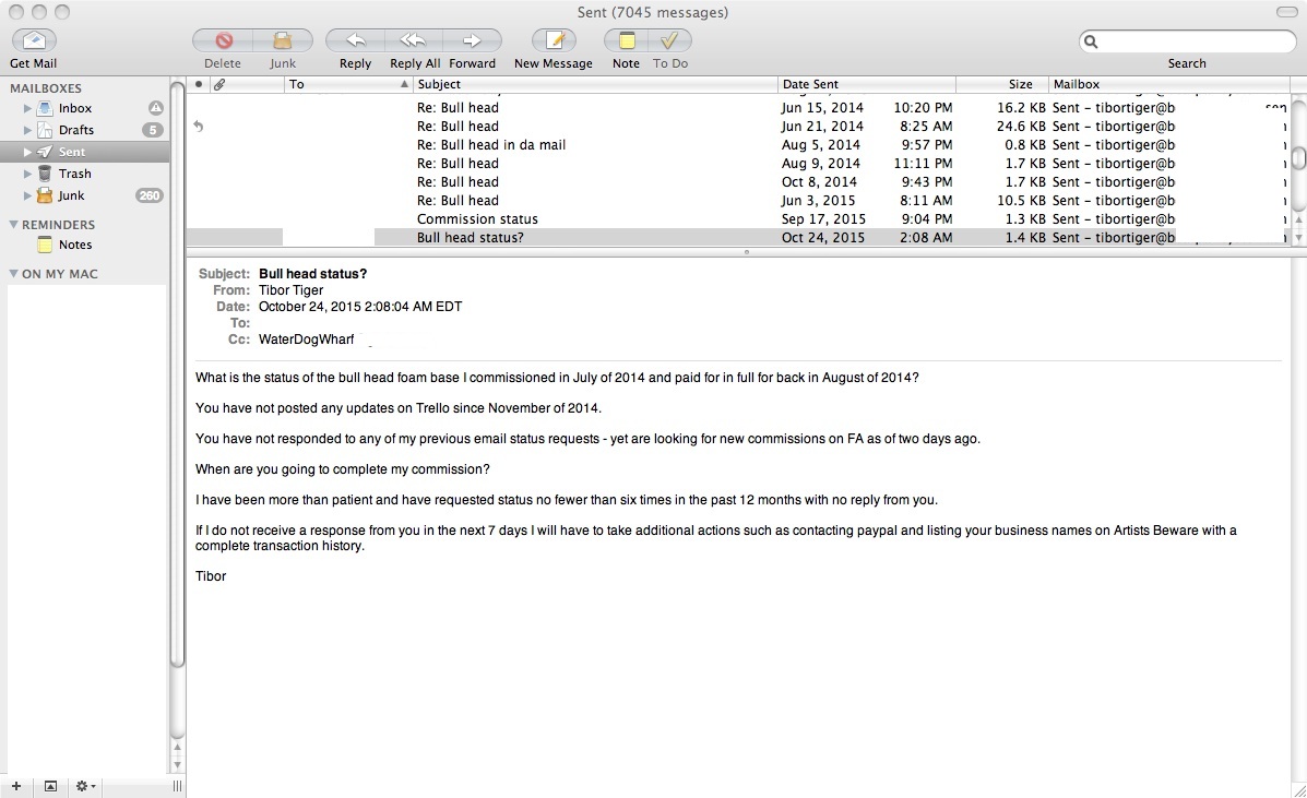 Builder continues to be unresponsive to emails sent to both email addresses published on FA. Builder opened for new commissions 3 weeks ago and is running banner ads on FA for new commissions. Last email received from builder regarding commission was 10/11/2014. I still want the completed commission but the builder will not respond to any emails. Contacting paypal to dispute transaction and obviously posting here to warn any others who may be considering getting anything from this builder.